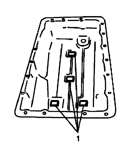 97. Install oil pan to transmission case. Tighten 20 oil pan bolts (1) to specified torque.