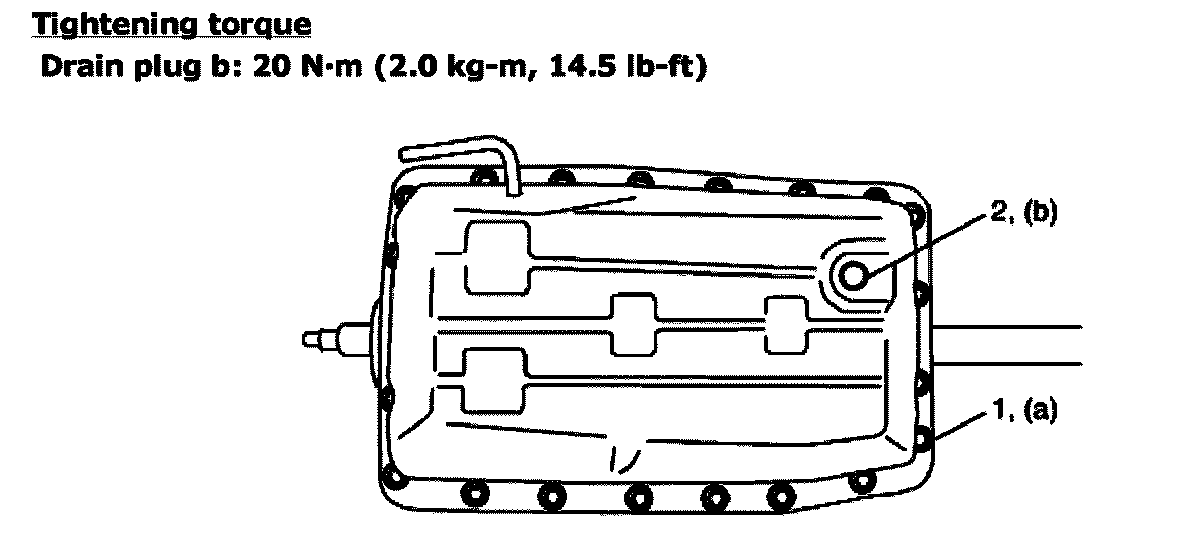Oil pan bolt a: 4.5 Nm (0.45 kg-m, 3.5 ft. lbs.)