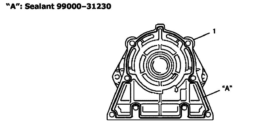 100. Apply sealant continuously to transmission case adapter sub assembly (1) mating surface as shown in figure.