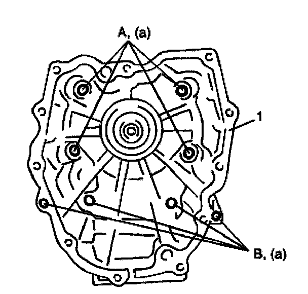 102. Clean threads of automatic transmission housing bolts and bolt holes of transmission case, install automatic transmission housing (1) to transmission case. Tighten 10 automatic transmission housing bolts to specified torque.