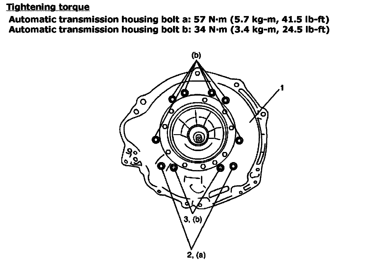 Transmission case adapter sub assembly bolt a: 34 Nm (3.4 kg-m, 24.5 ft. lbs.)