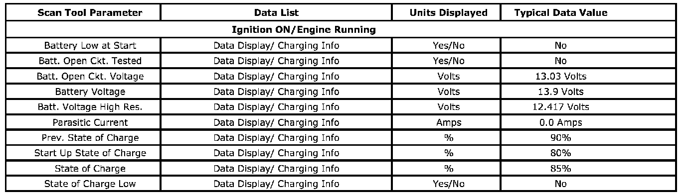 Scan Tool Data List - Engine Electrical
