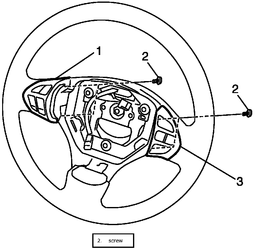 3. Remove remote audio control switch (1) with cruise control switch (3) (if equipped).