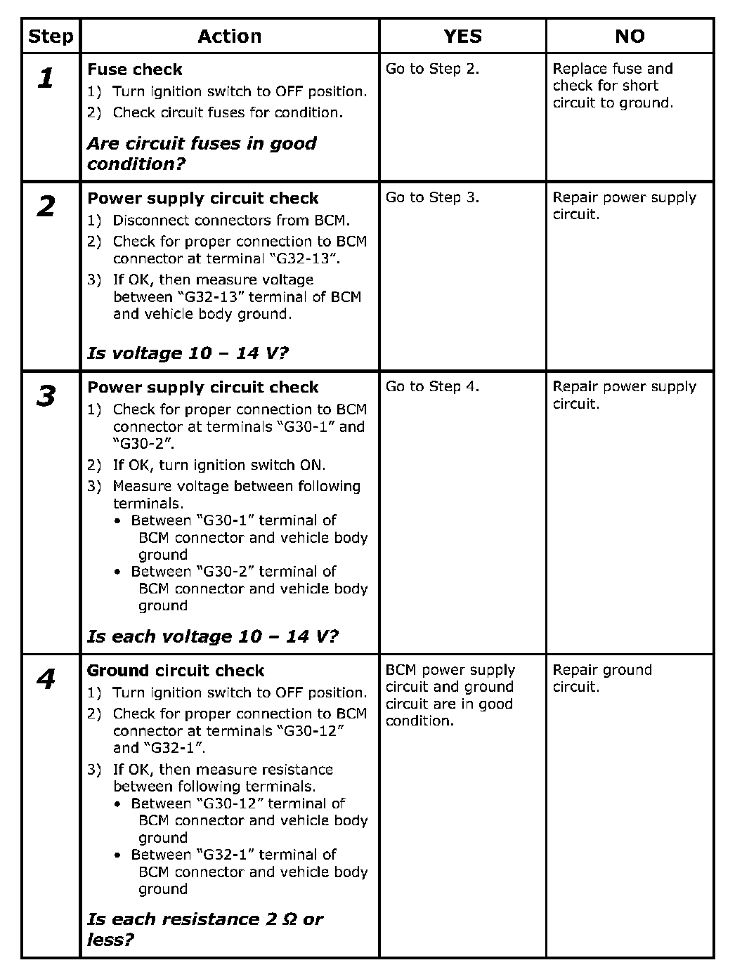 BCM Power Circuit and Ground Circuit Check