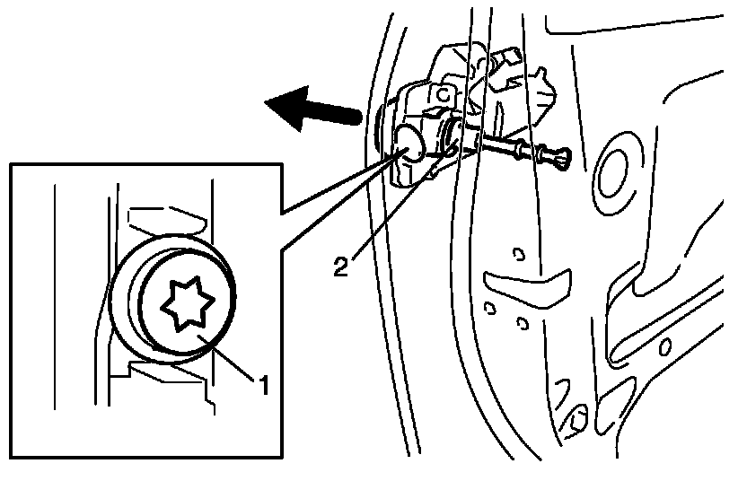 1. Remove door mirror trim (1) and door trim screw cover (2).