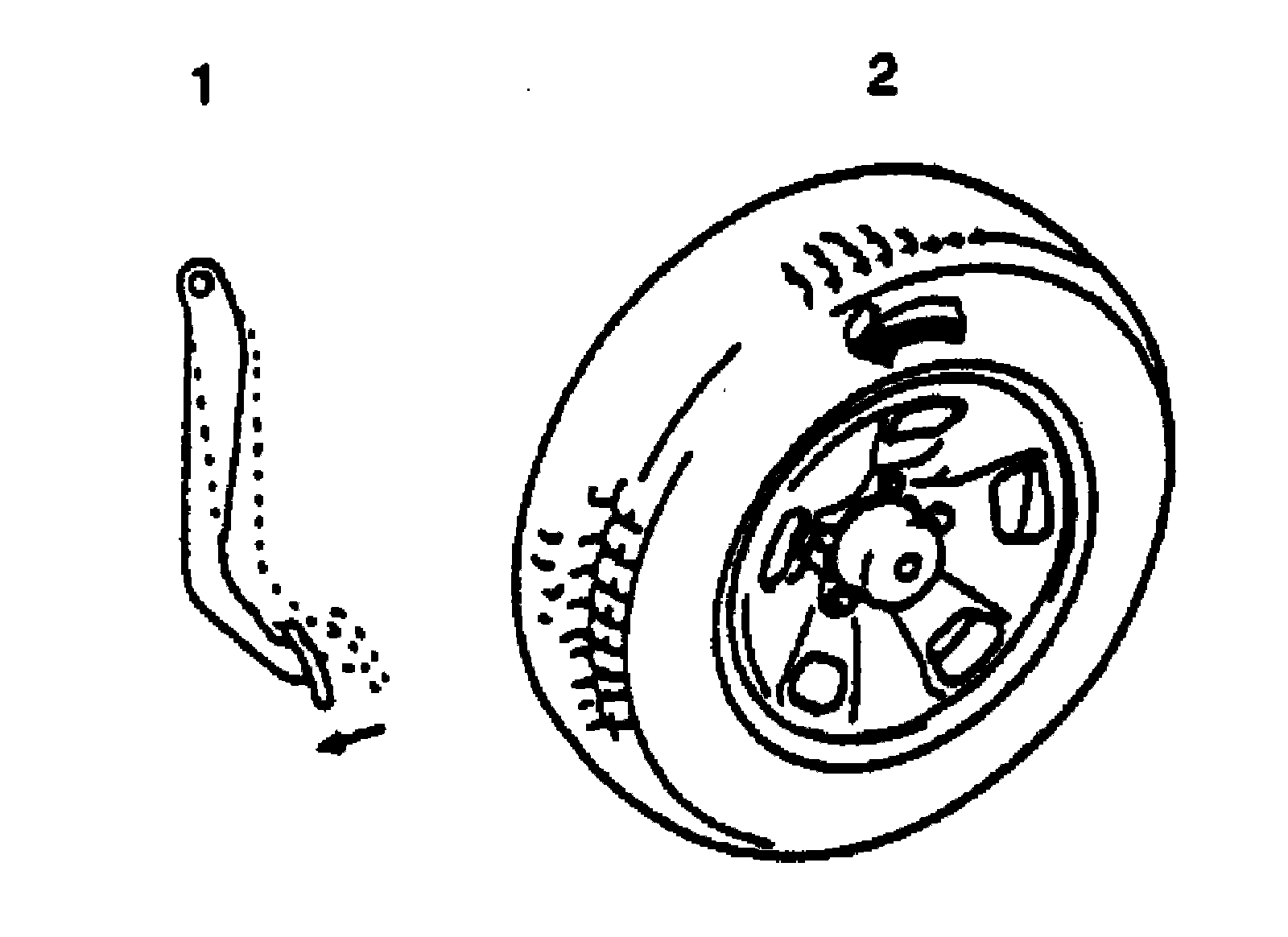 ^ Pressurization check Step off brake pedal (1) and then select testing wheel by SUZUKI scan tool and the wheel (2) should be turned by another person's hand. At this time, check whether the wheel locks due to brake pressurization.