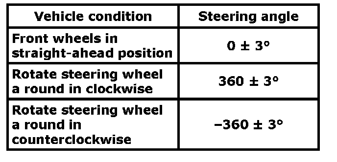 Steering Angle Sensor On-Vehicle InspectionCAUTION: Before each inspection, confirm steering angle sensor calibration is completed. If calibration is incomplete, calibrate sensor.