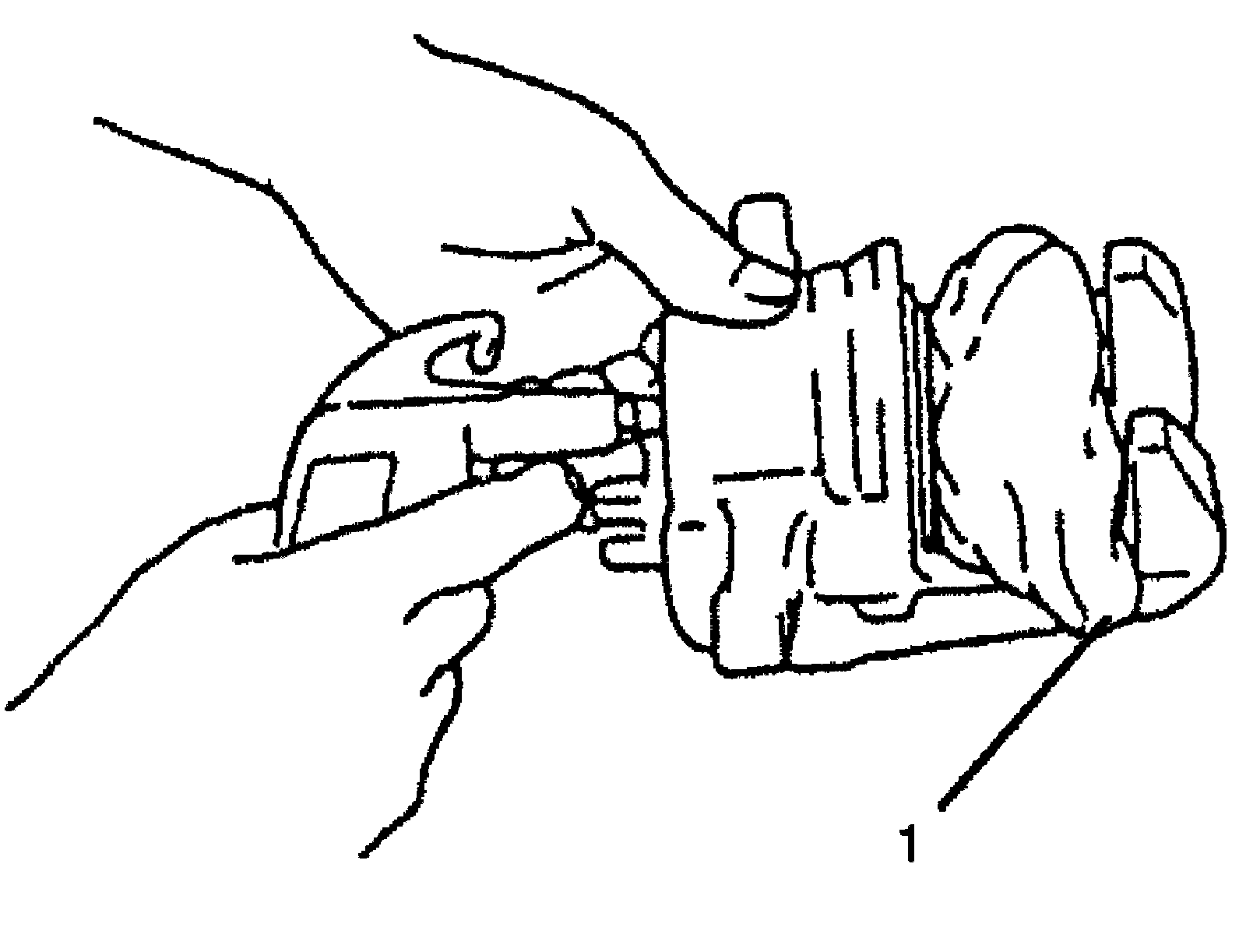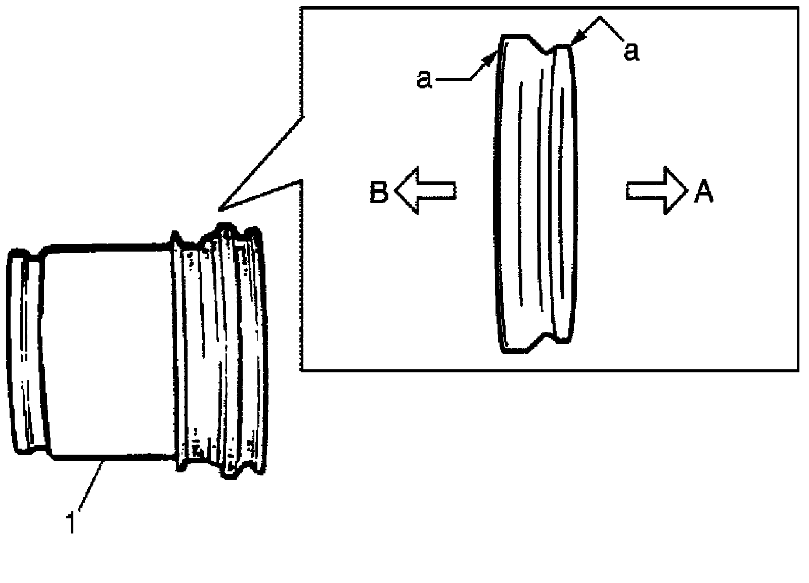 1. Before inserting piston (1) into cylinder, apply brake fluid to new cylinder boot (a) and piston (1). Install cylinder boot onto piston as shown in figure.