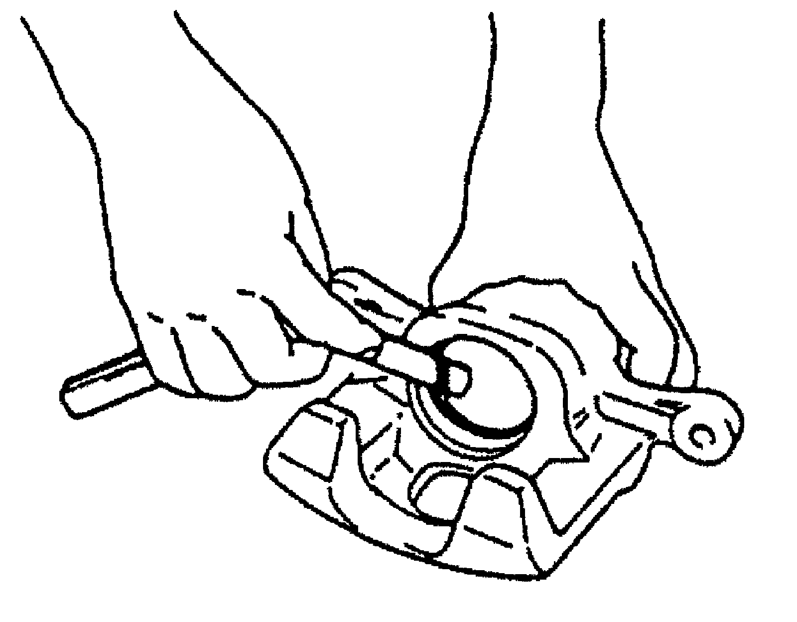 1. Remove disc brake piston with air blown into flexible hose joint bolt installation hole.