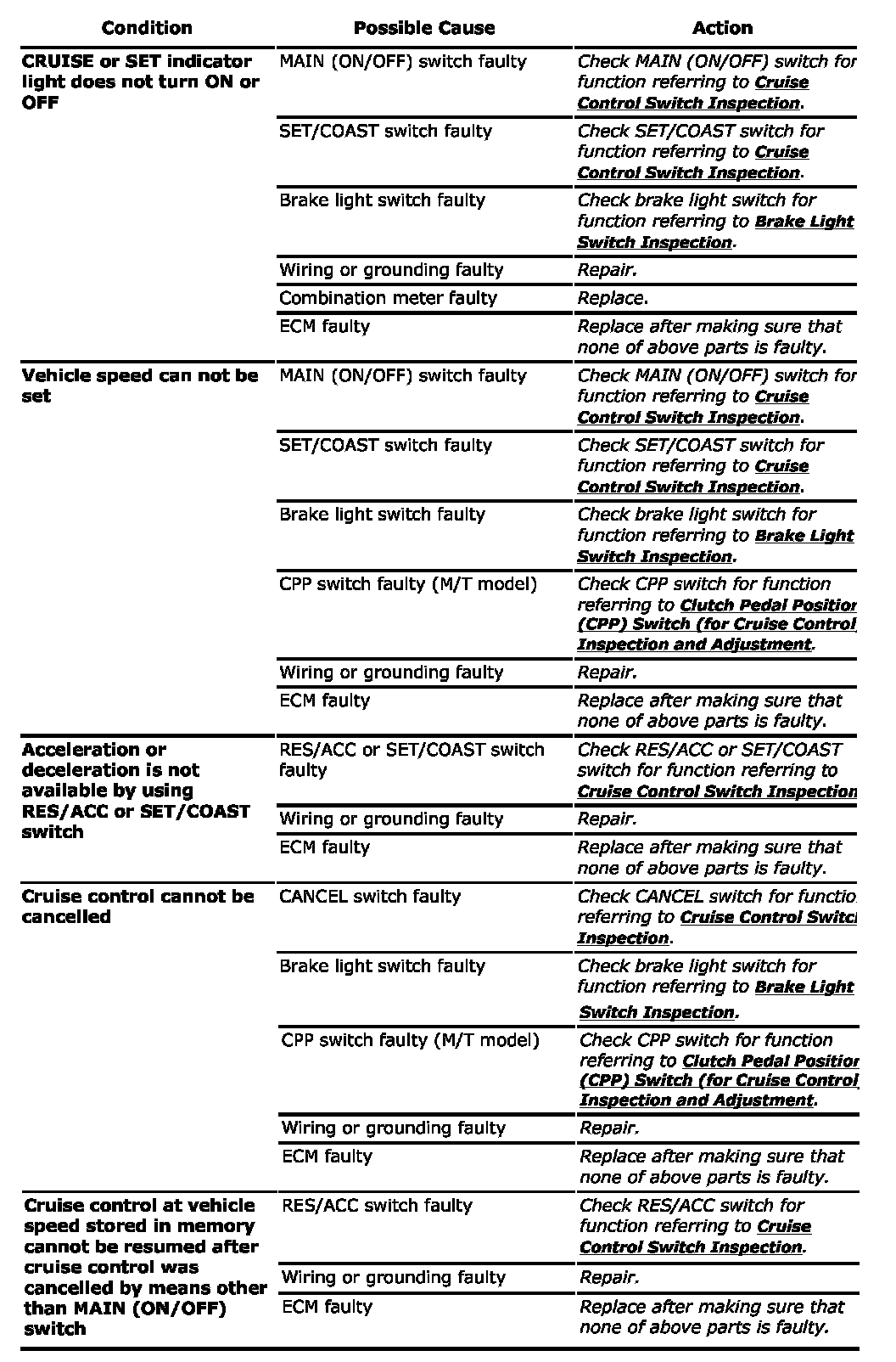 - Before performing this Cruise Control System Symptom Diagnosis, perform cruise control system check referring to Cruise Control System Check.