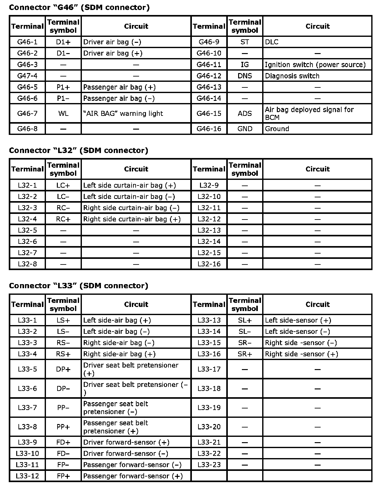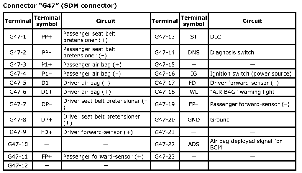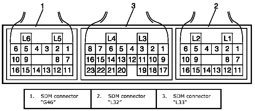 Terminal Arrangement Of SDM (viewed From Harness Side) (Part 1):
