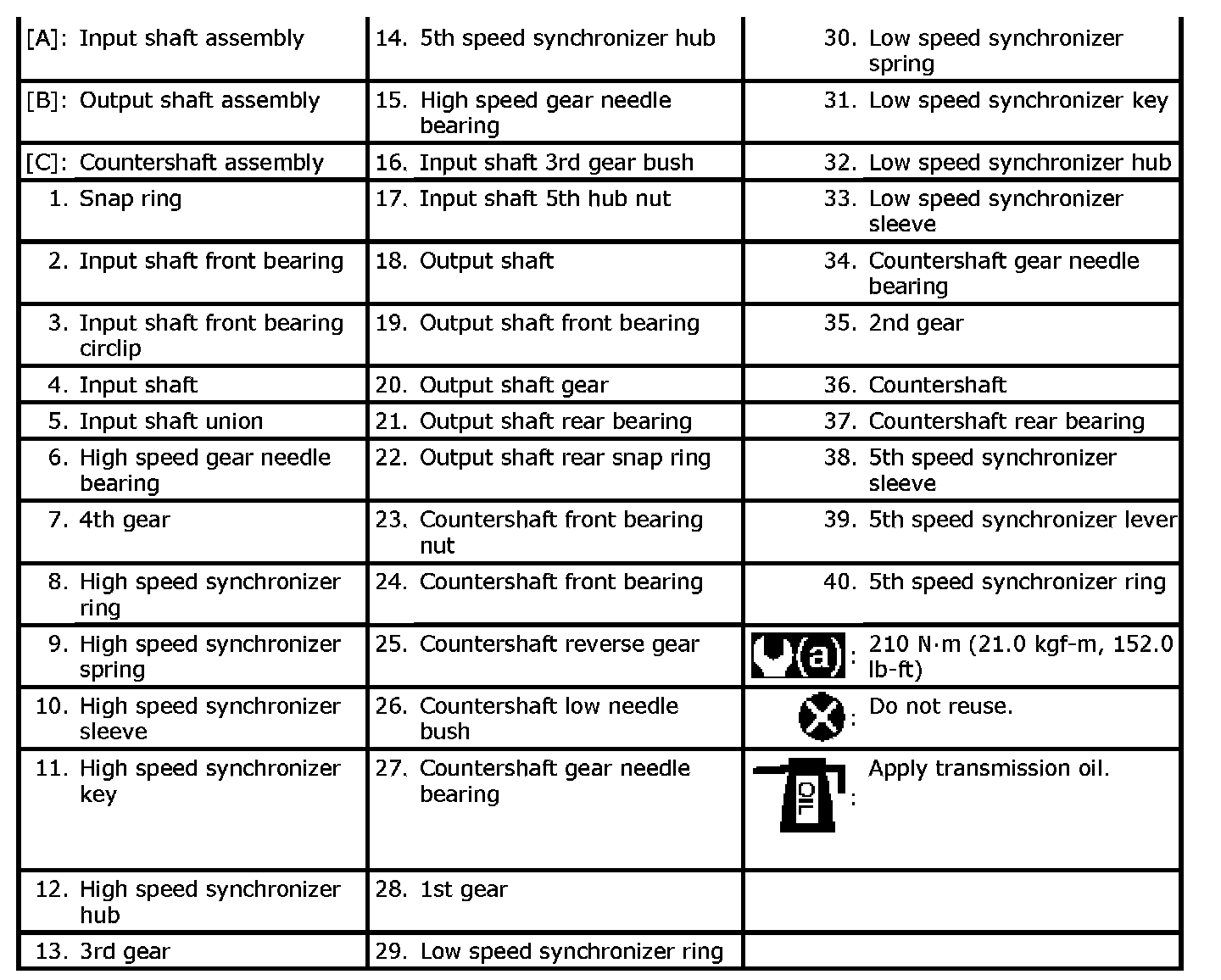 Input Shaft Assembly, Output Shaft Assembly and Countershaft Assembly Components