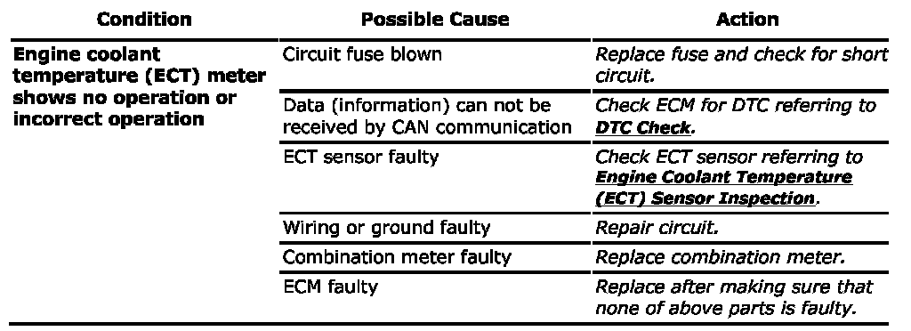 Engine Coolant Temperature (ECT) Meter Symptom Diagnosis: