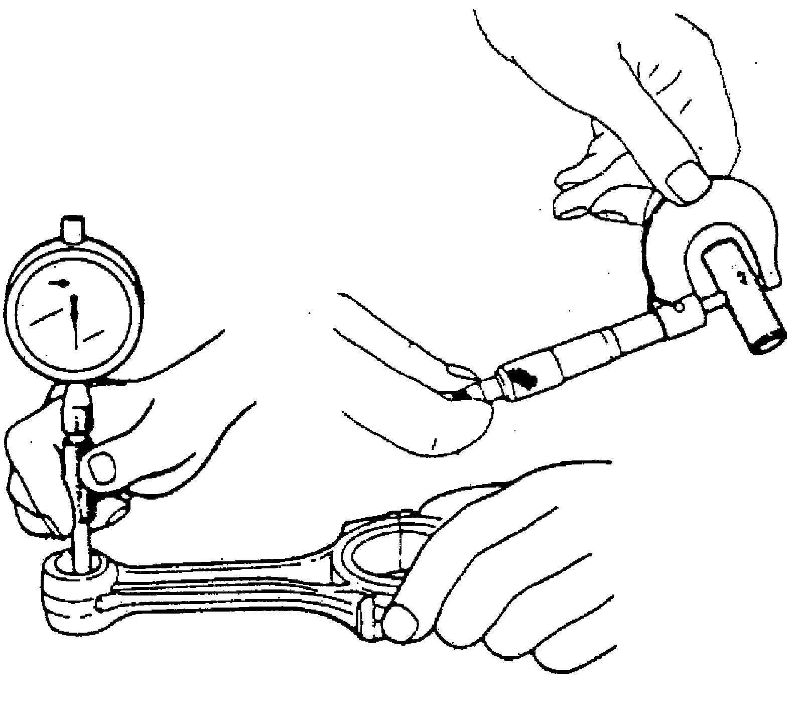 ^ Piston pin clearance: Check piston pin clearance in small end. Replace connecting rod if its small end is badly worn or damaged or if measured clearance exceeds limit.