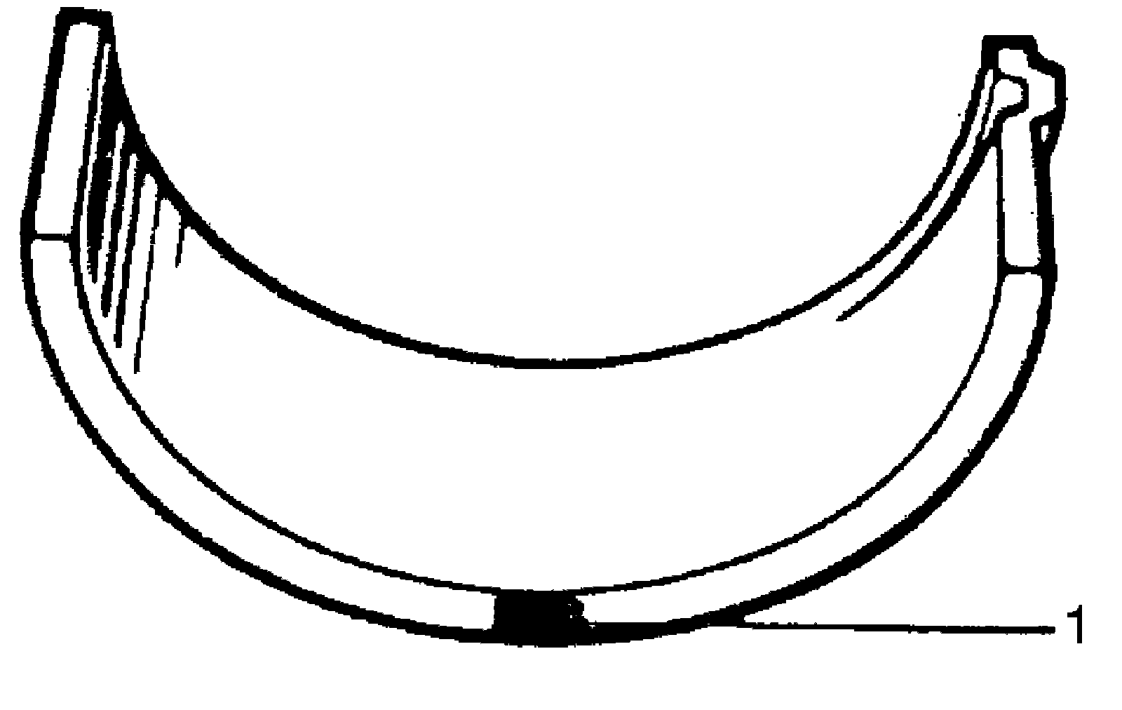 3. Place a piece of gauging plastic (1) to full width of bearing (parallel to crankshaft) on journal, avoiding oil hole.