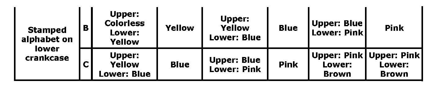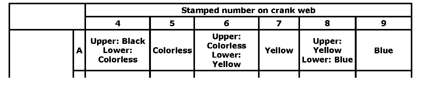 For example, if number stamped on crank web is "4" and alphabet stamped on cylinder block is "A", install new standard bearing painted in "Black" to cylinder block side journal and "Colorless" to lower crankcase side journal.