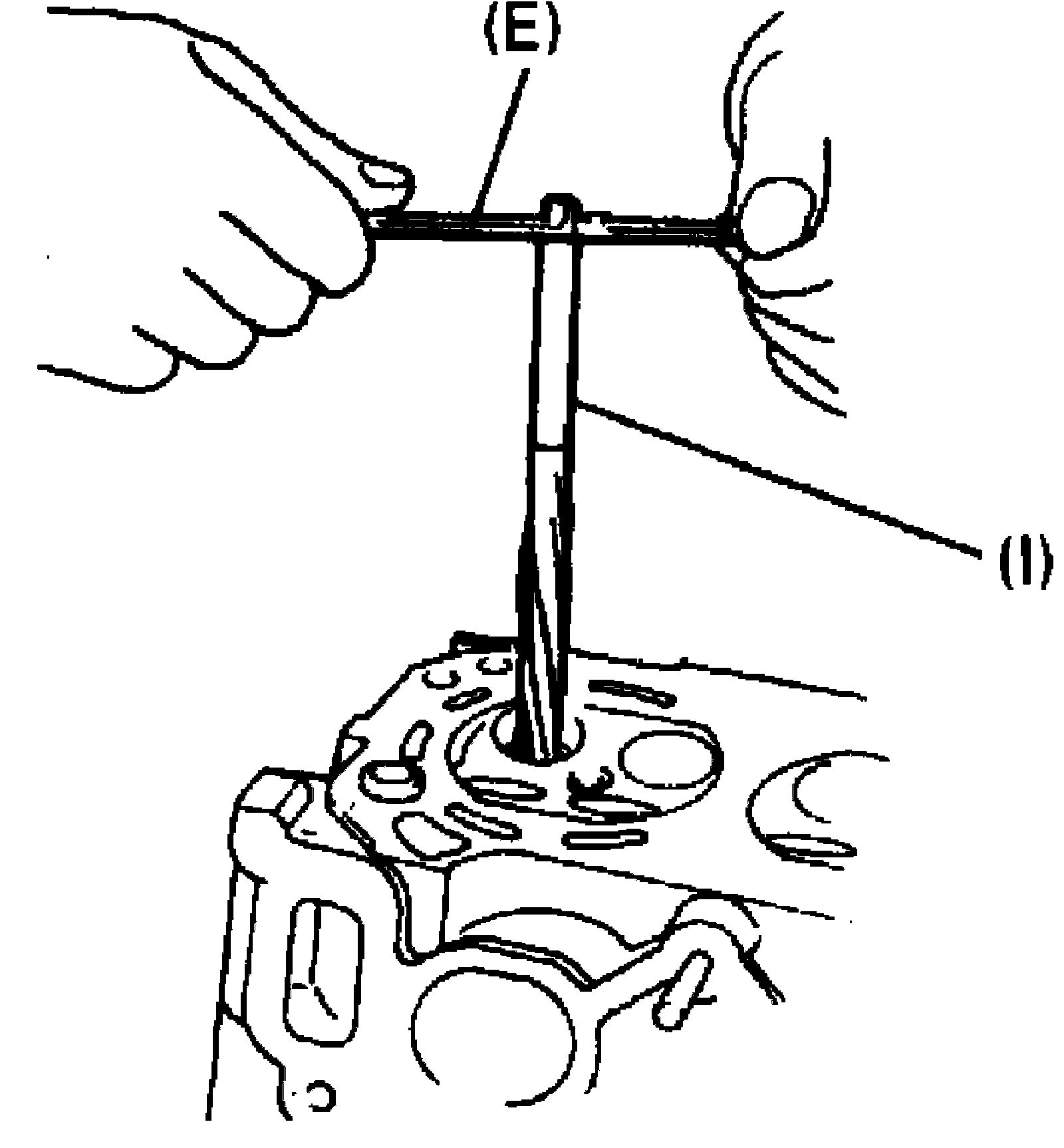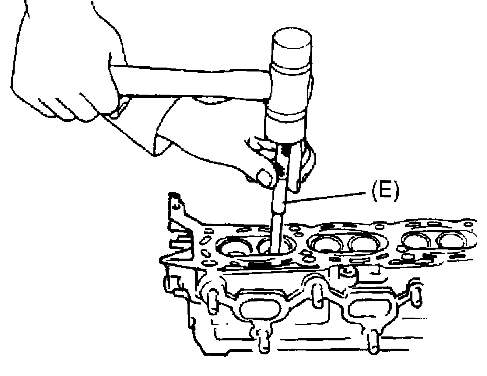 5. Using special tool (E) (Valve guide remover), drive valve guide out from combustion chamber side to valve spring side.