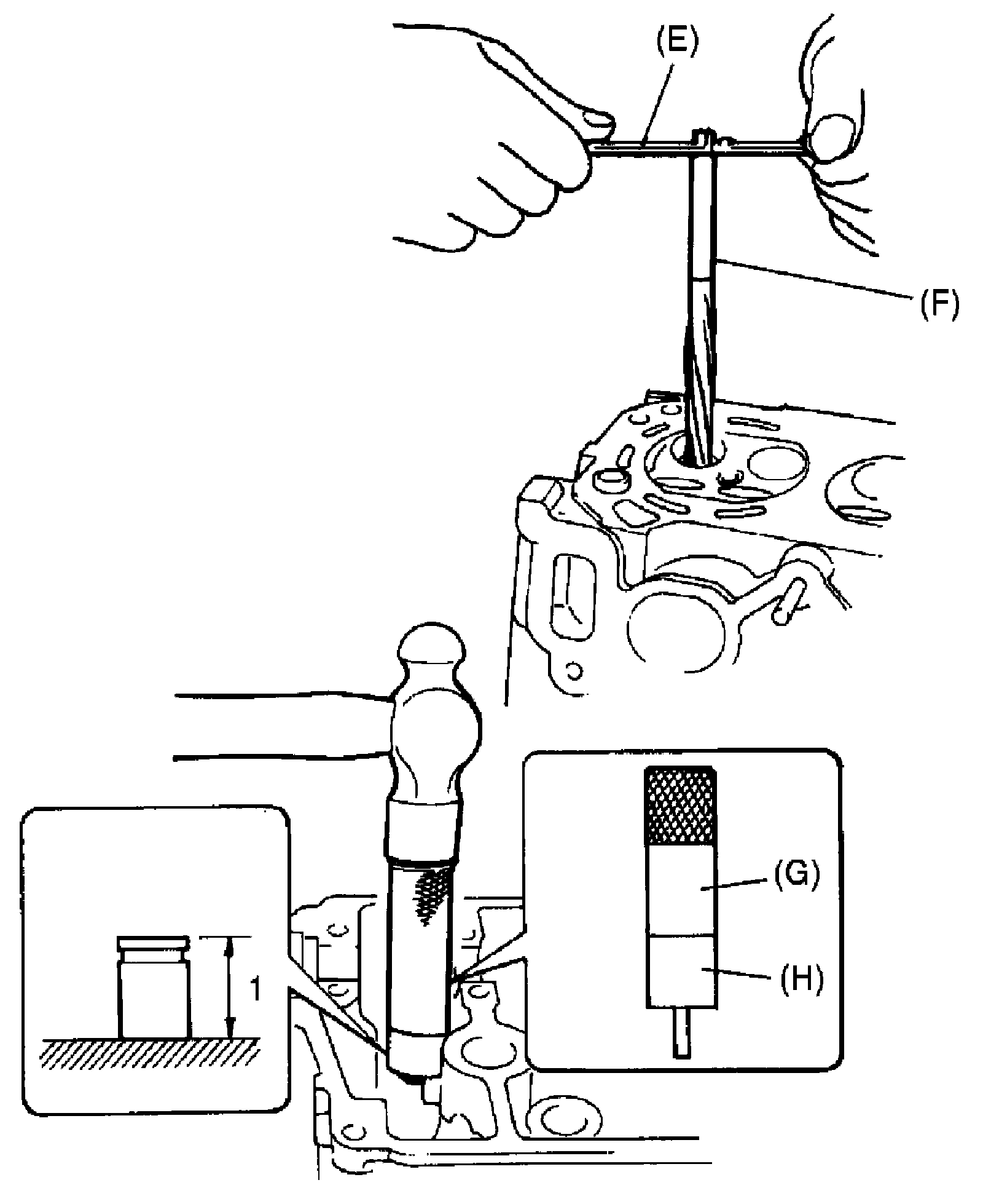 After installing, make sure that valve guide protrusions (1) by specified height from cylinder head.