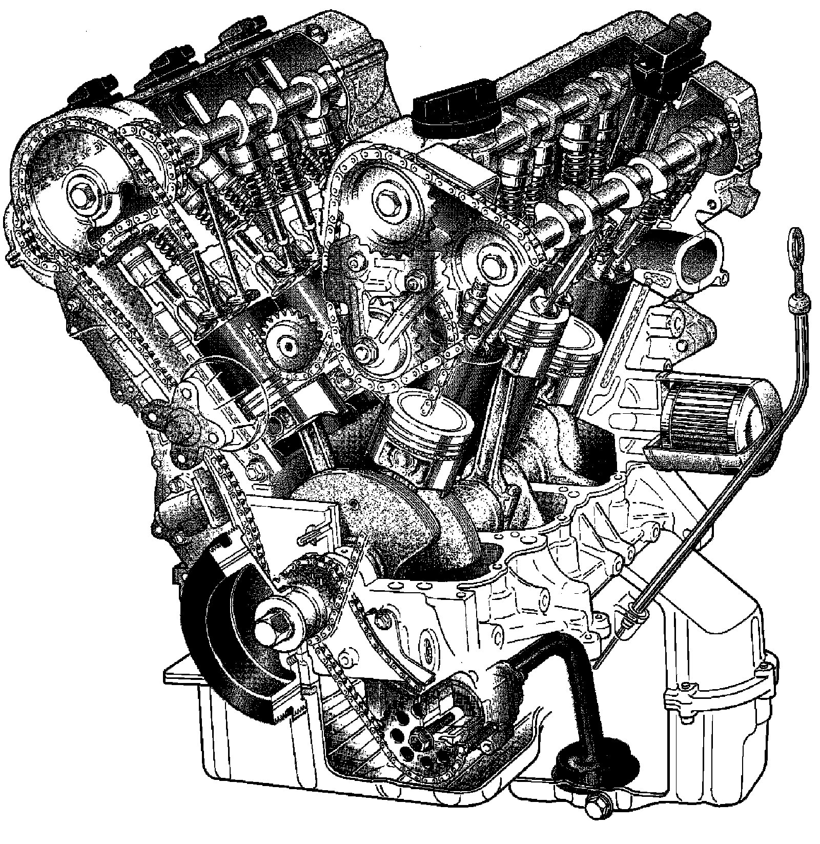 Engine General InformationThe engine is a water-cooled, 60° V6 cylinders, 4 stroke cycle gasoline unit with its DOHC (Double overhead camshaft) valve mechanism arranged for "V" type valve configuration. The double overhead camshaft is mounted over the cylinder head; it is driven from crankshaft through timing chains, and no push rods are provided in the valve train system.