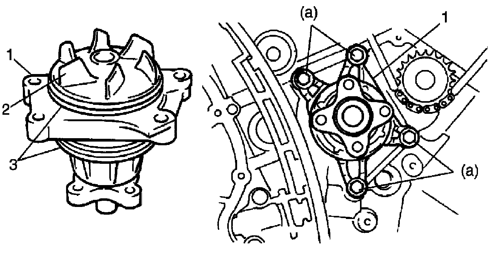 1. Install new O-rings (3) to water pump (1).