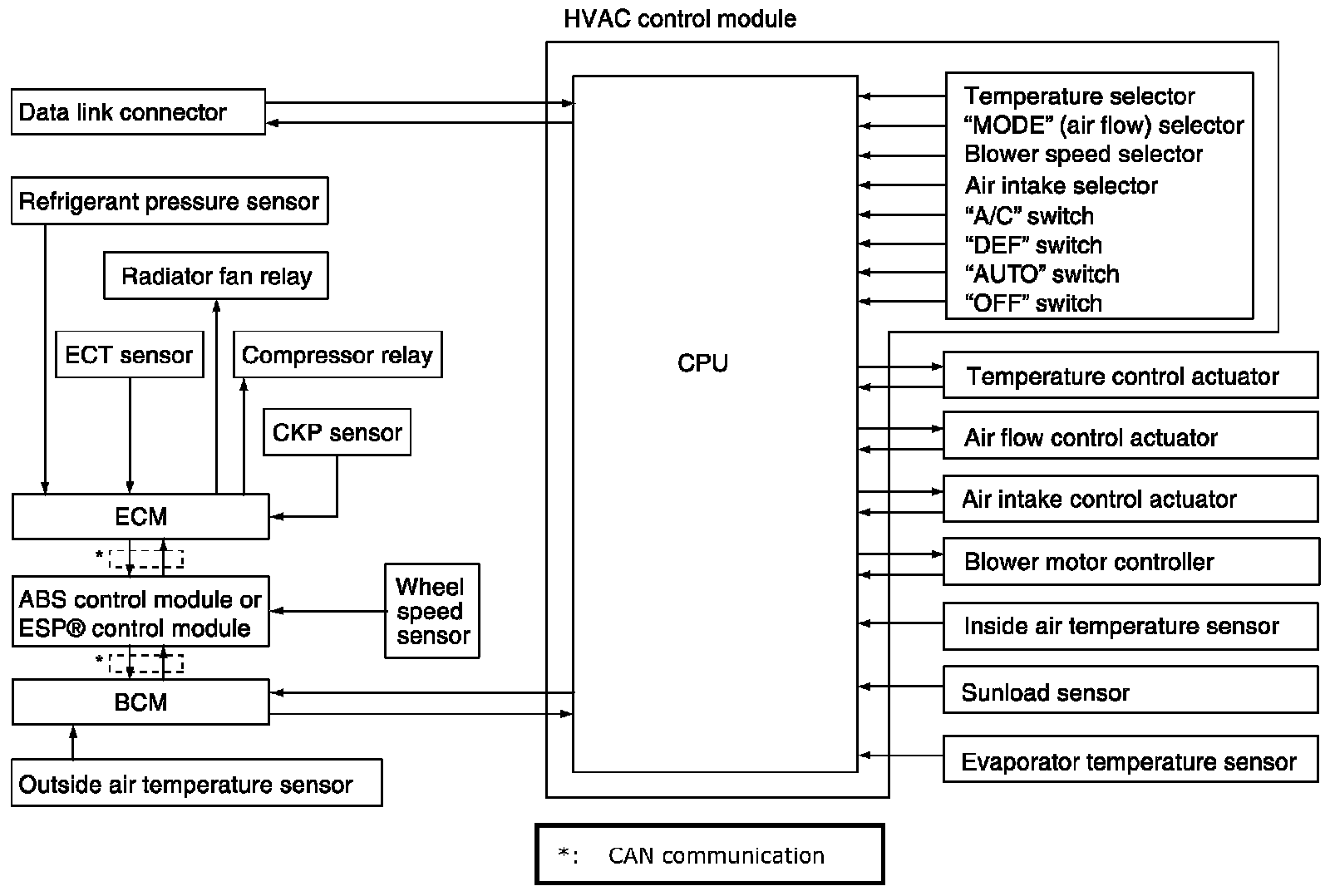 Auto A/C Electronic Control Input/Output Table