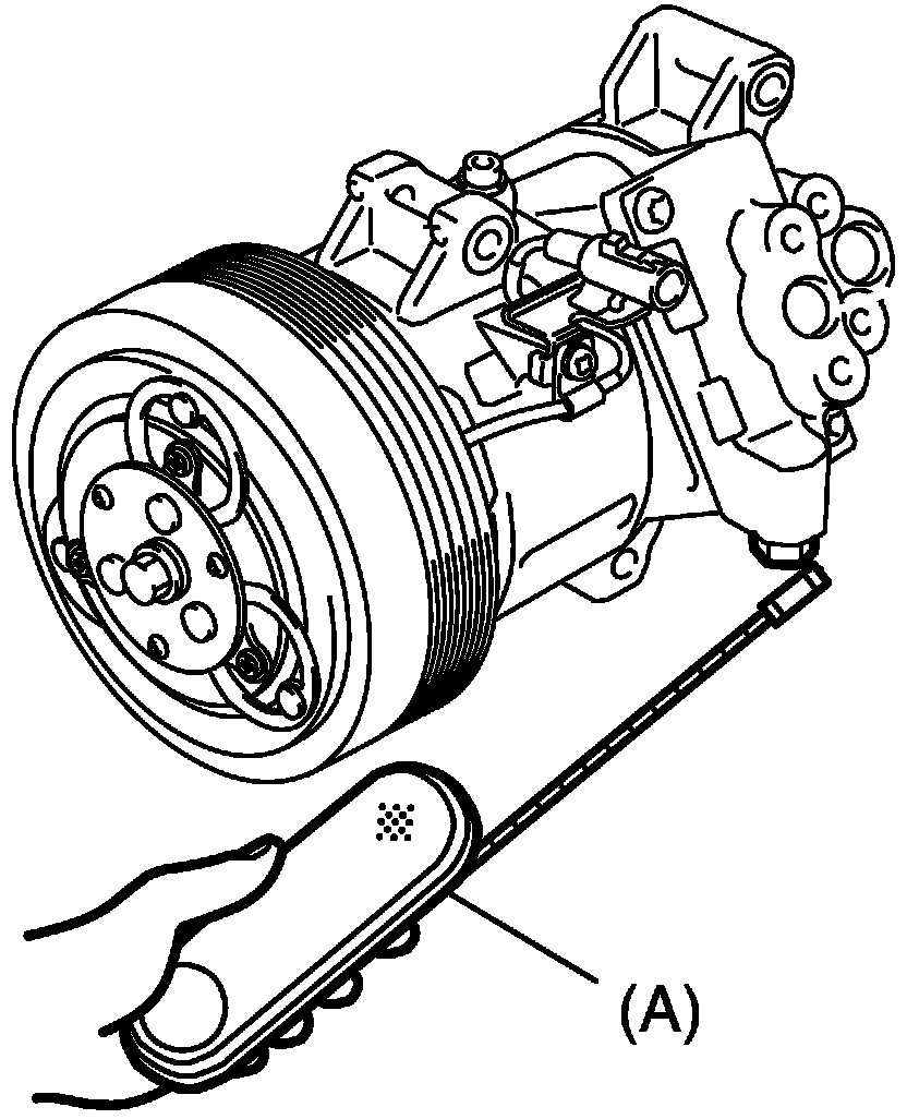 Using special tool (A), check is there is refrigerant leakage. If there is refrigerant leakage, replace compressor body.