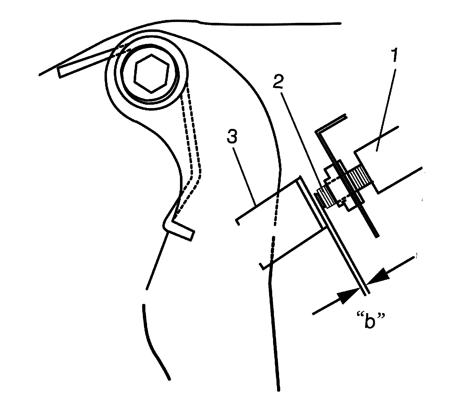 Clearance "b" between end of thread and brake pedal stay