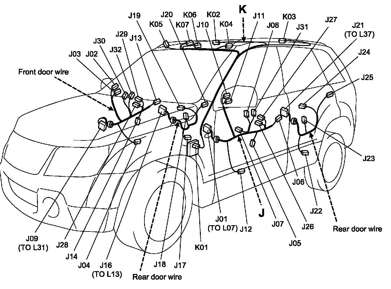 J: Front And Rear Door Wire, Rear Door Joint Wire / K: Roof Wire View: