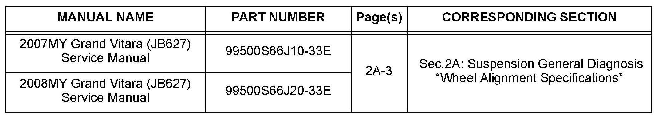 SERVICE MANUAL UPDATE: FRONT AND REAR WHEEL ALIGNMENT