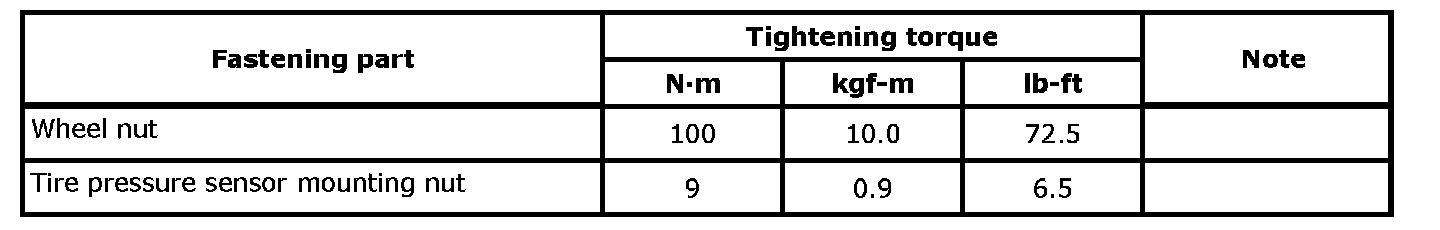 Tightening Torque Specifications