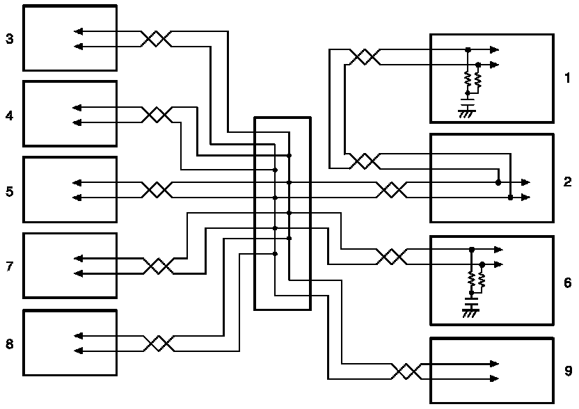 CAN Communication System DescriptionECM (1), ABS / ESP(R) control module (2), TCM (for A/T model) (3), BCM (4), 4WD control module (if equipped) (5), combination meter (6), keyless start control module (if equipped) (7), steering angle sensor (if equipped) (8) and ID controller (CANADA model) (9) of this vehicle communicate control data between each control module.
