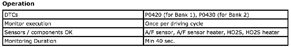 OBD System Description - Catalyst MonitorSystem Description / Monitoring Procedure