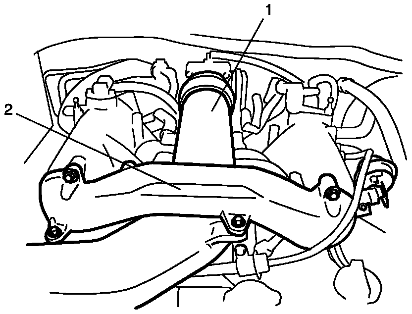 4. Remove intake air pipe (1) and surge tank pipe (2).
