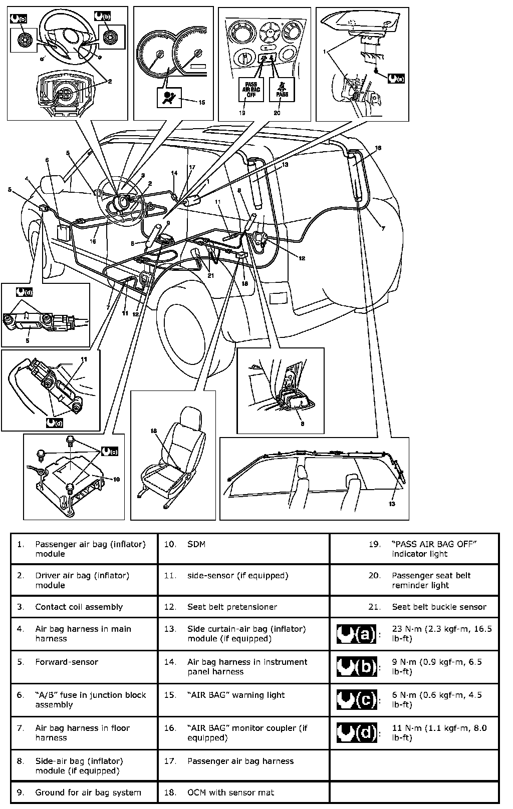 Air Bag System Components, Wiring And Connectors Location:
