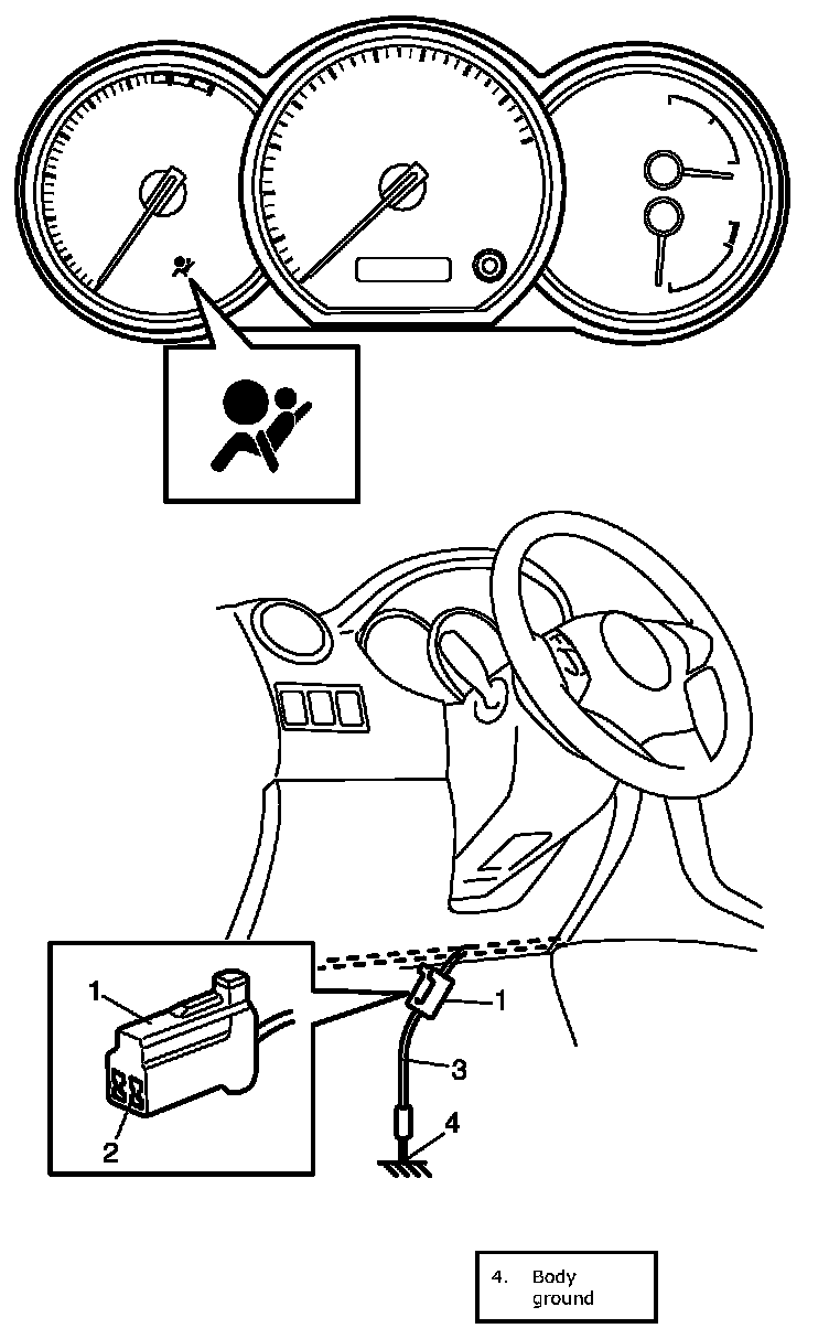 1. Using service wire (3), ground diagnosis switch terminal (2) in "AIR BAG" monitor coupler (1).