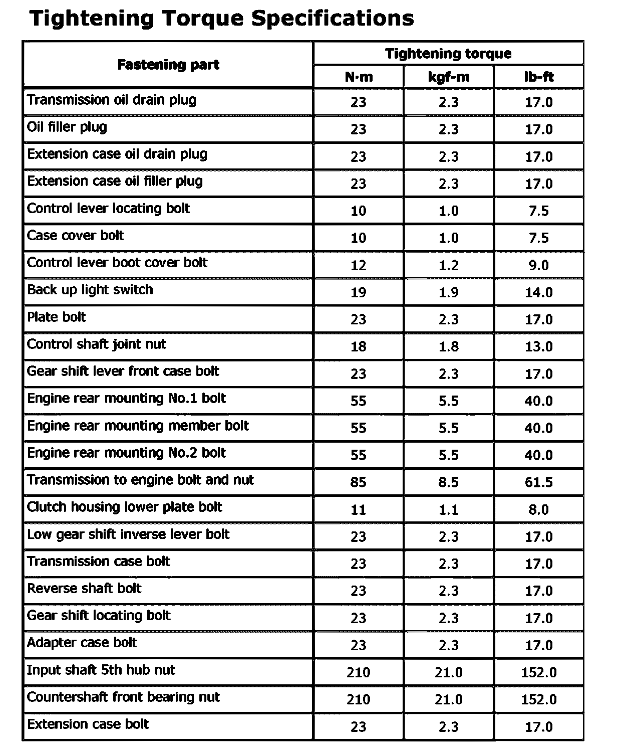 Tightening Torque SpecificationsTightening Torque Specifications: