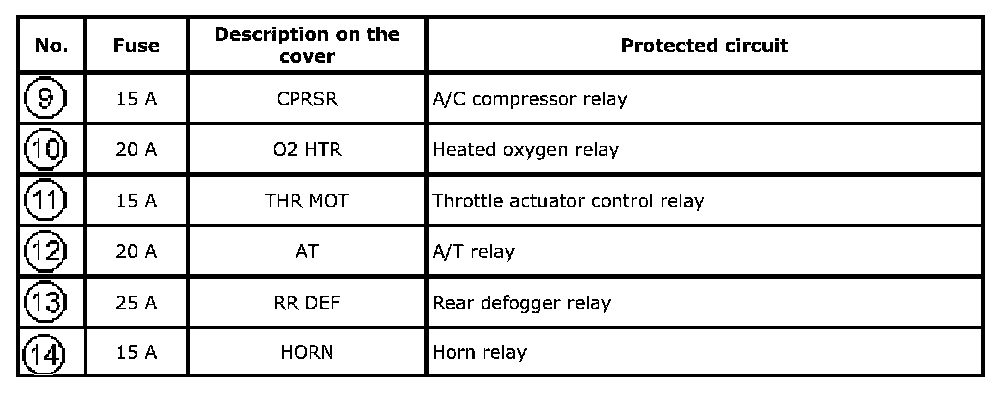 Fuse Box No.2 Fuse 9-Fuse 14: