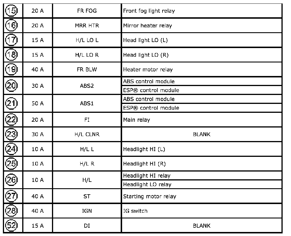 Fuse Box No.2 Fuse 15-Fuse 52: