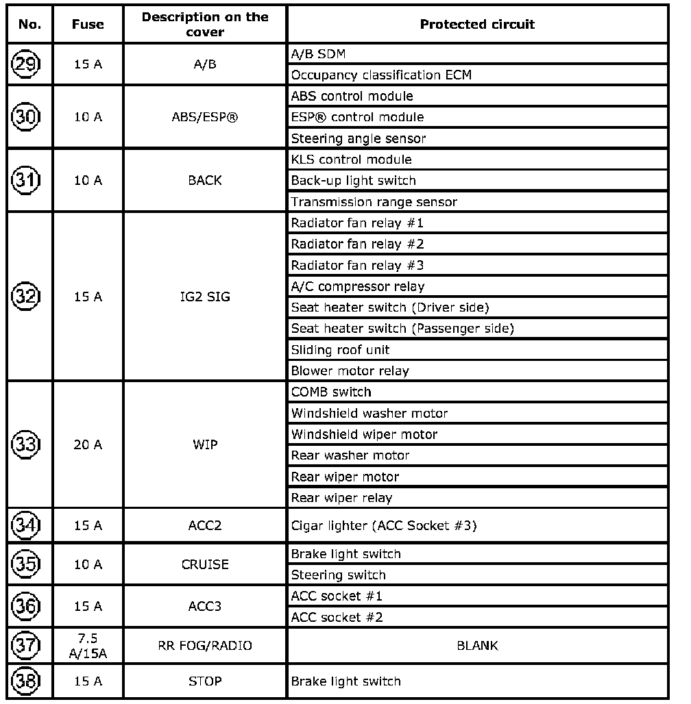 Fuse Box No.3 Fuse 29-Fuse 38: