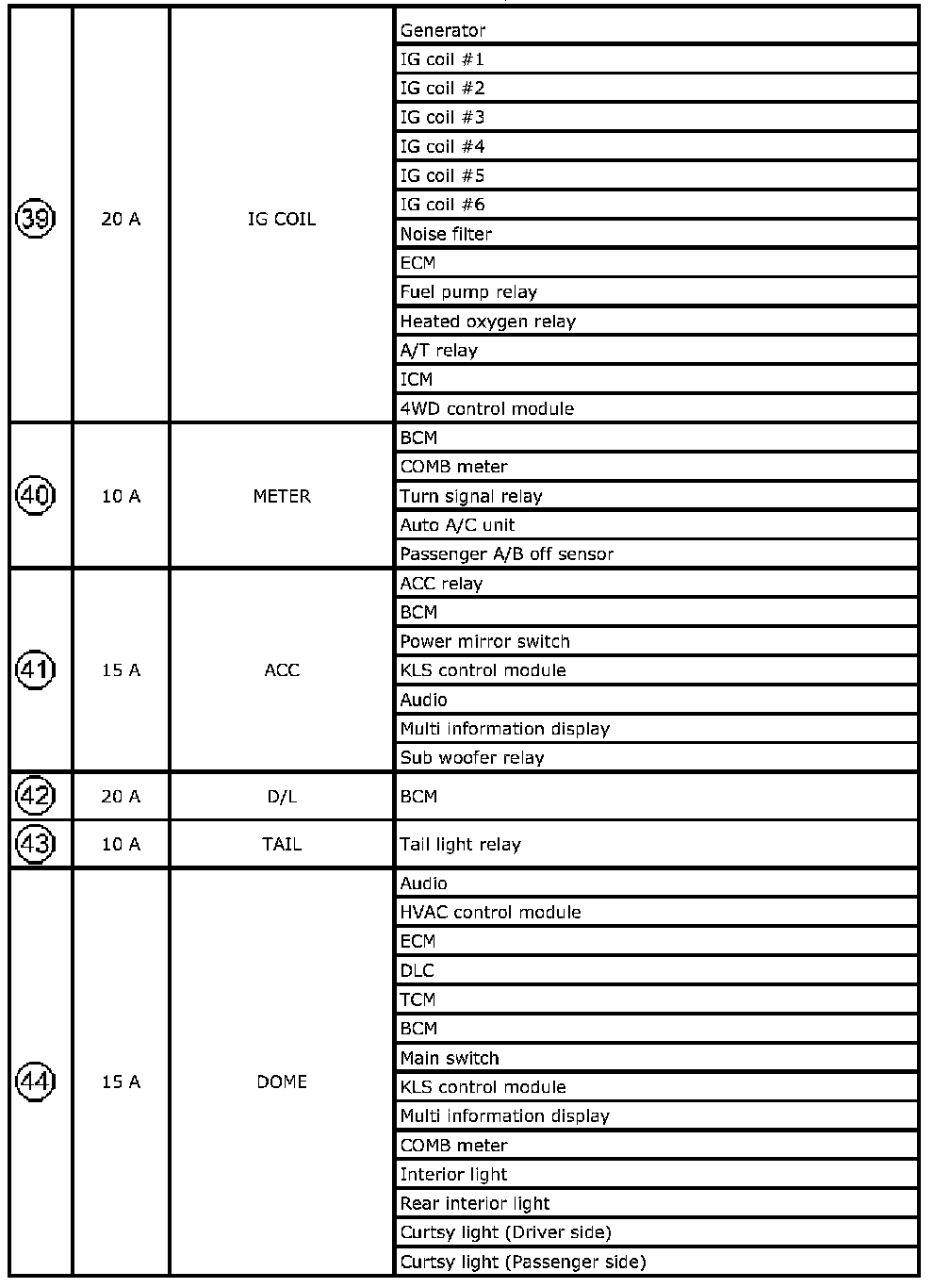 Fuse Box No.3 Fuse 39-Fuse 44(Continued):
