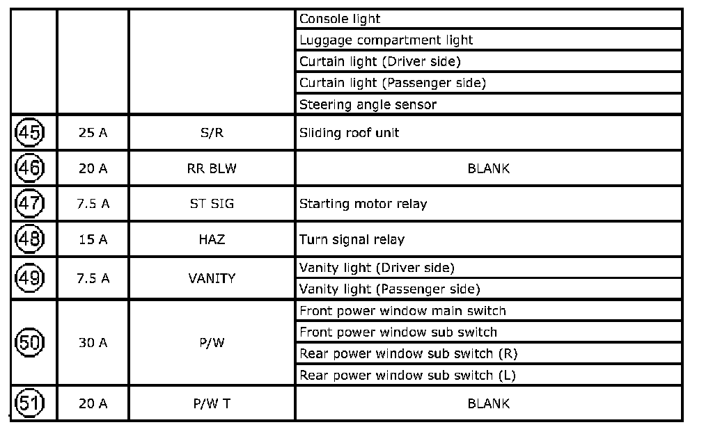 Fuse Box No.3 Fuse 44(Continued)-Fuse 51: