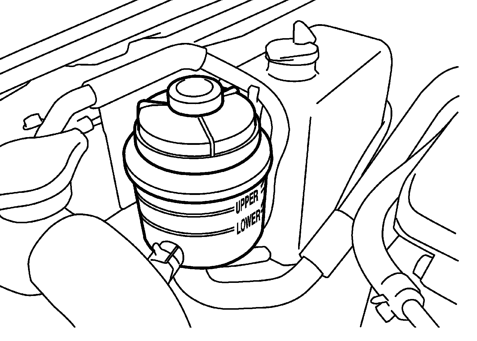 P/S Fluid Level CheckWith engine stopped, check fluid level indicated on P/S fluid reservoir, which should be between "UPPER" and "LOWER" marks. If it is lower than "LOWER" mark, fill fluid up to "UPPER" mark.