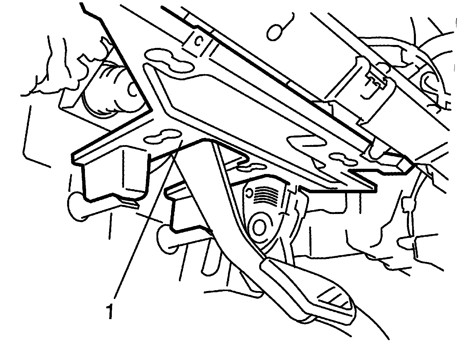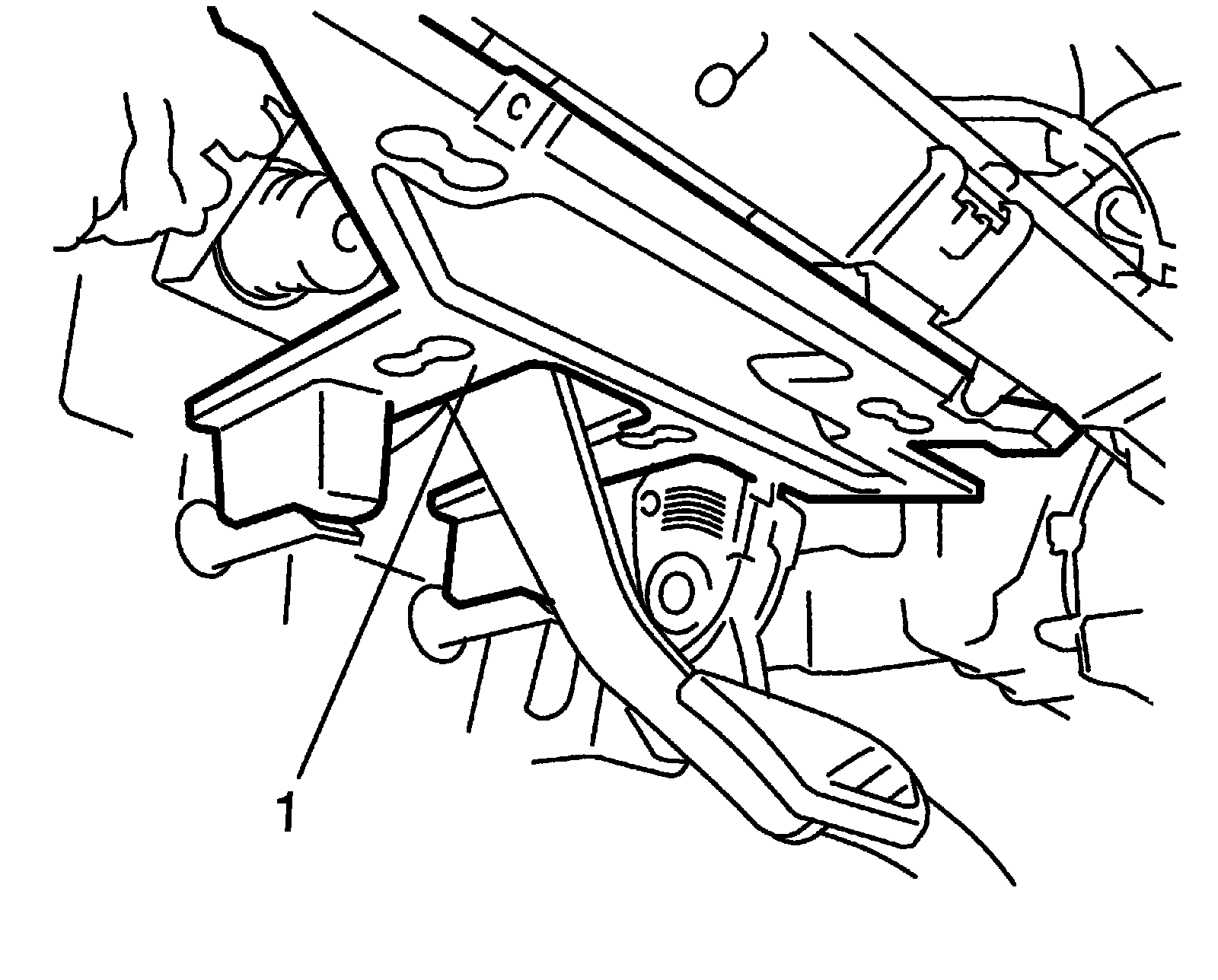 4) Remove instrument panel under cover (1) from instrument panel.