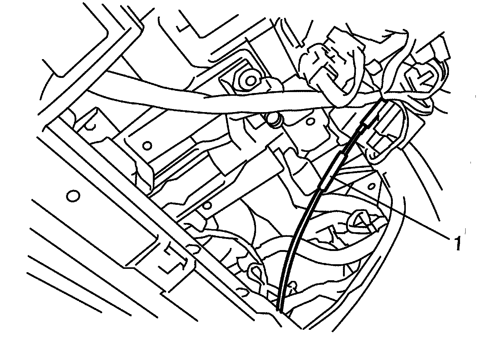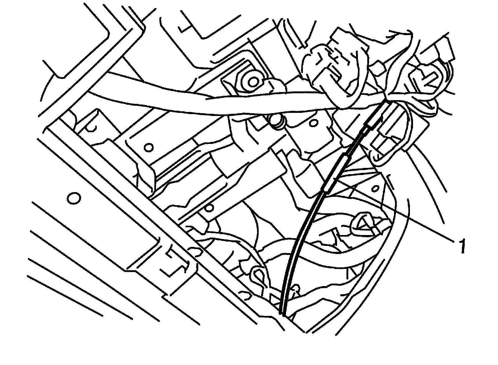 6) For A/T vehicle, connect shift (key) interlock cable (1) to ignition switch with ignition switch turned at ACC position. And then turn ignition switch LOCK position.
