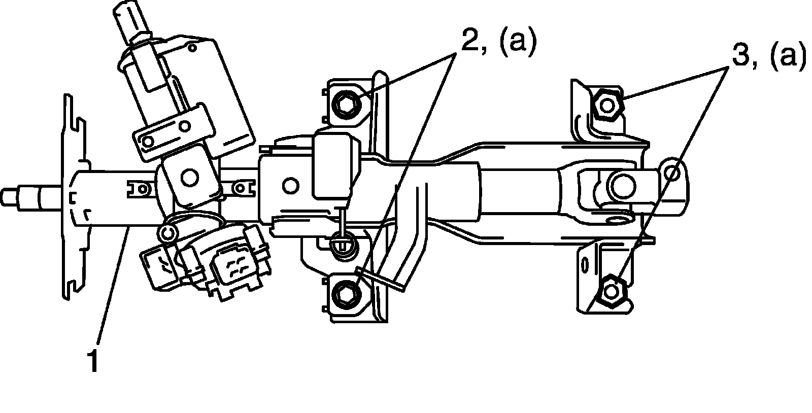 Steering column assembly mounting bolt and nut (a):25 Nm (2.5 kg-m, 18.0 ft. lb.)