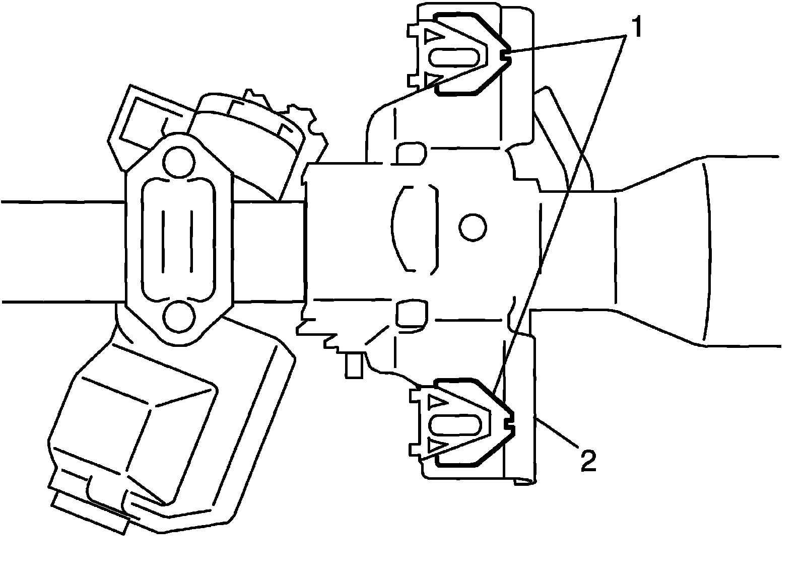 ^ Check that 2 capsules (1) are attached to steering column bracket (2) securely. Check clearance between capsules and steering column bracket. Clearance should be 0 mm (0 in.) on both sides. If found loose or clearance, replace steering column assembly.