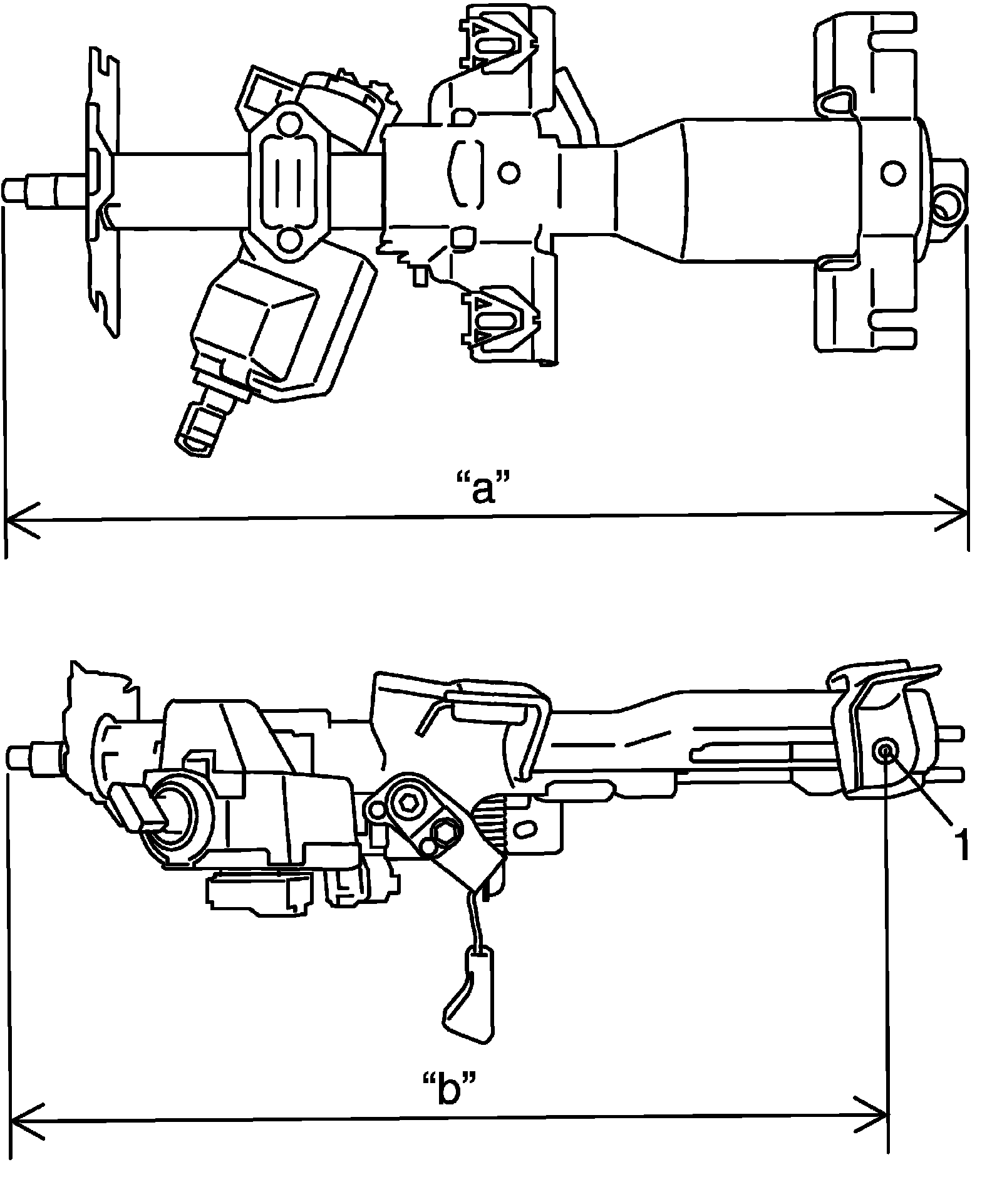 ^ Take measurement "a" and "b" as shown in the figure. If it is shorter than specified length, replace column assembly with a new one.