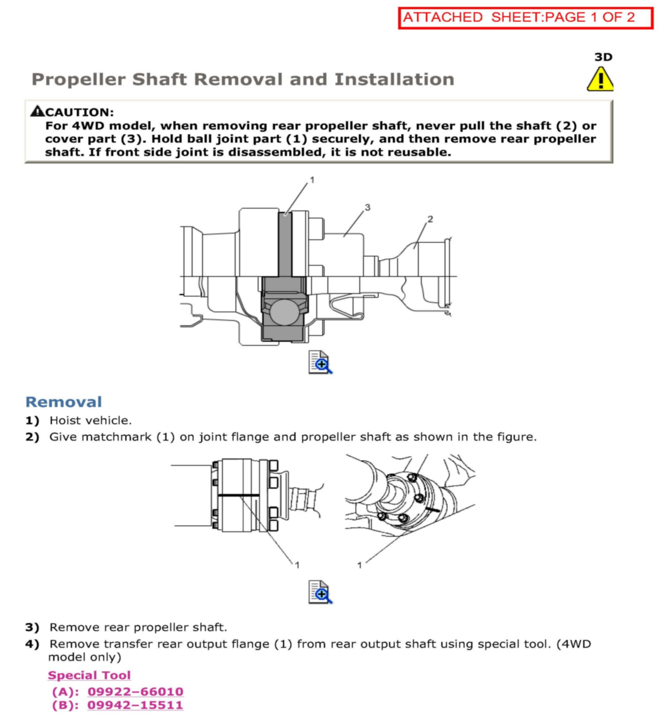 SERVICE MANUAL UPDATE: CORRECTION TO PROPELLER SHAFT REMOVAL AND INSTALLATION