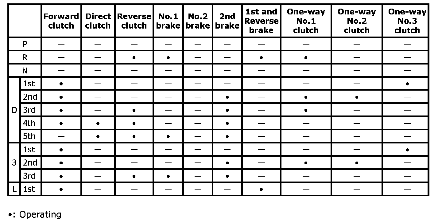 Table of A/T Component Operation