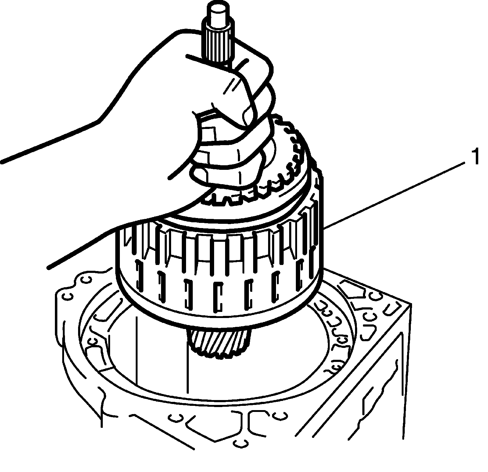 67) Install clutch dram and input shaft assembly (1) to transmission case.